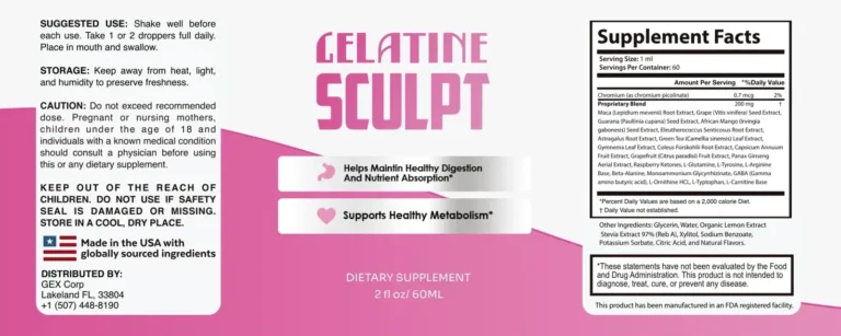 Gelatine Sculpt is a premium liquid dietary supplement developed with a specialized blend of botanical extracts and amino acids to support healthy metabolism. It stands out in the market by utilizing rapid absorption technology, allowing active nutrients to enter the system much more efficiently.